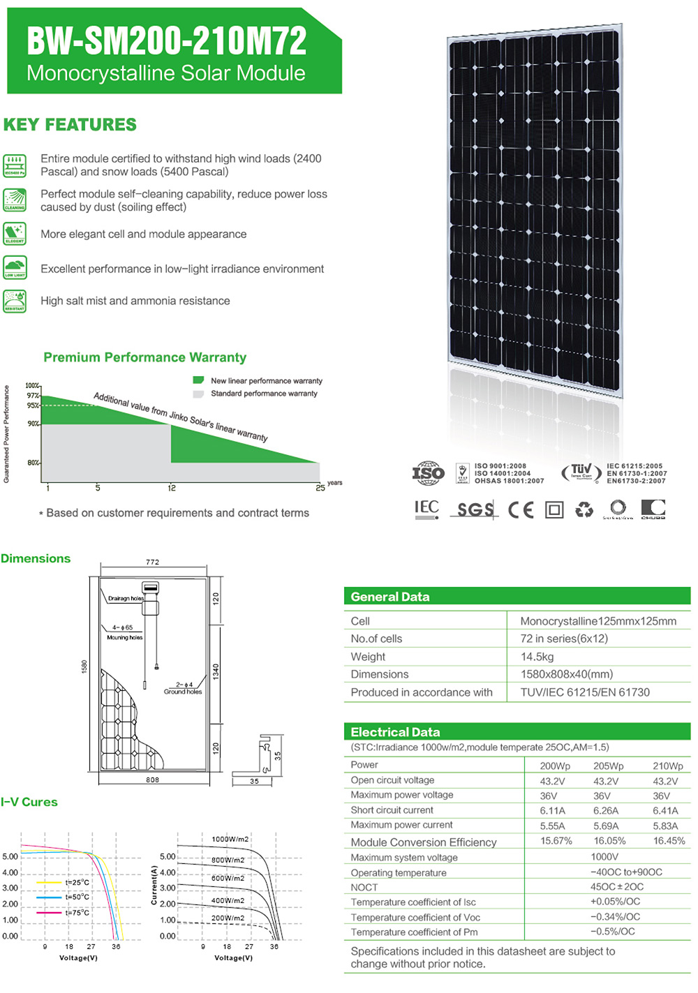 Monocrystalline silicon(BW-SM200-210M72)